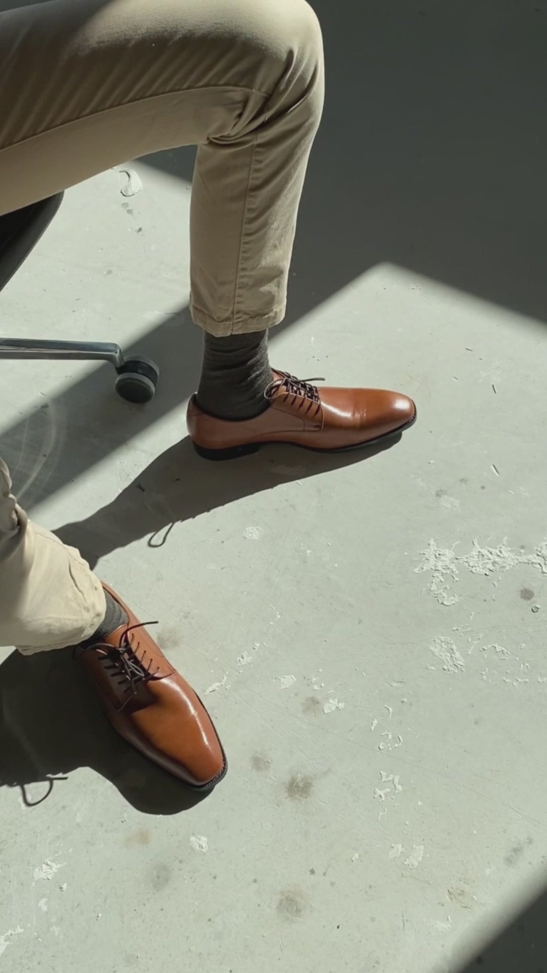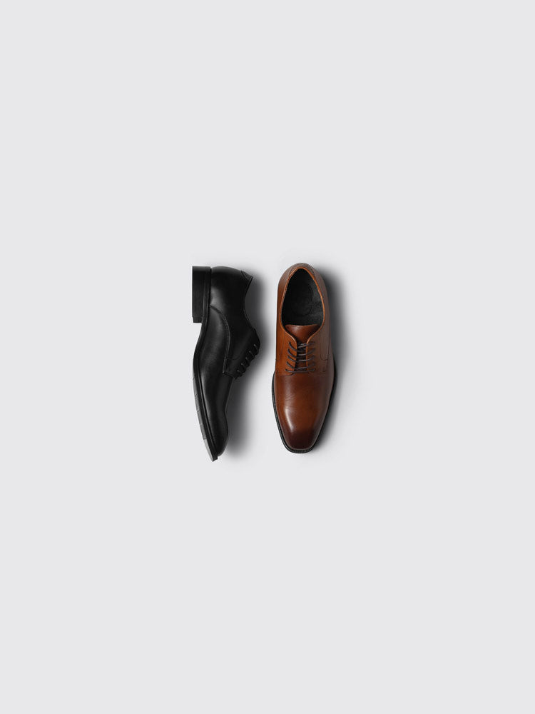 En klassisk dress-sko for herre i konjakkfarget kalveskinn. True to size, velg din vanlige størrelse.