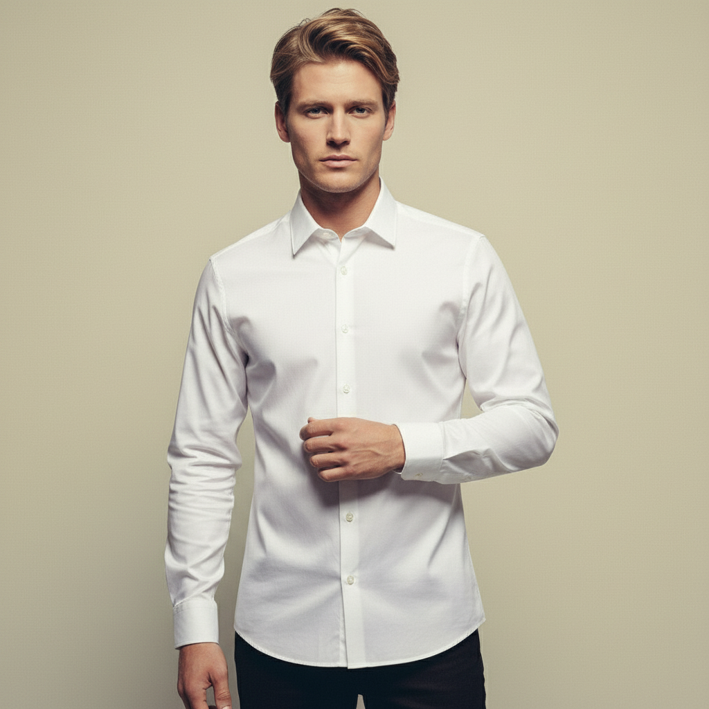 En perfekt hvit skjorte sydd for business. Dobbeltvunnet bomullstråd gir et luksuriøst stoff med komfortabel ha-på-følelse. Regular fit for en rettere passform. Knapper i perlemorfarge. Skjorten er lettstelt, som betyr at den trenger minimalt med behandling etter vask og tørk. Blend: 100% 2ply premium bomull.