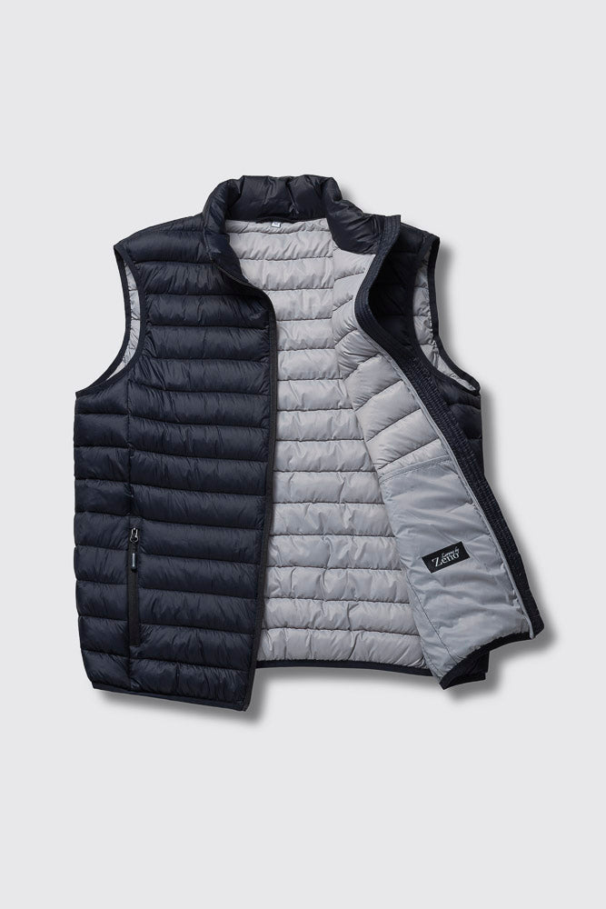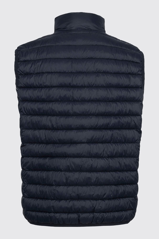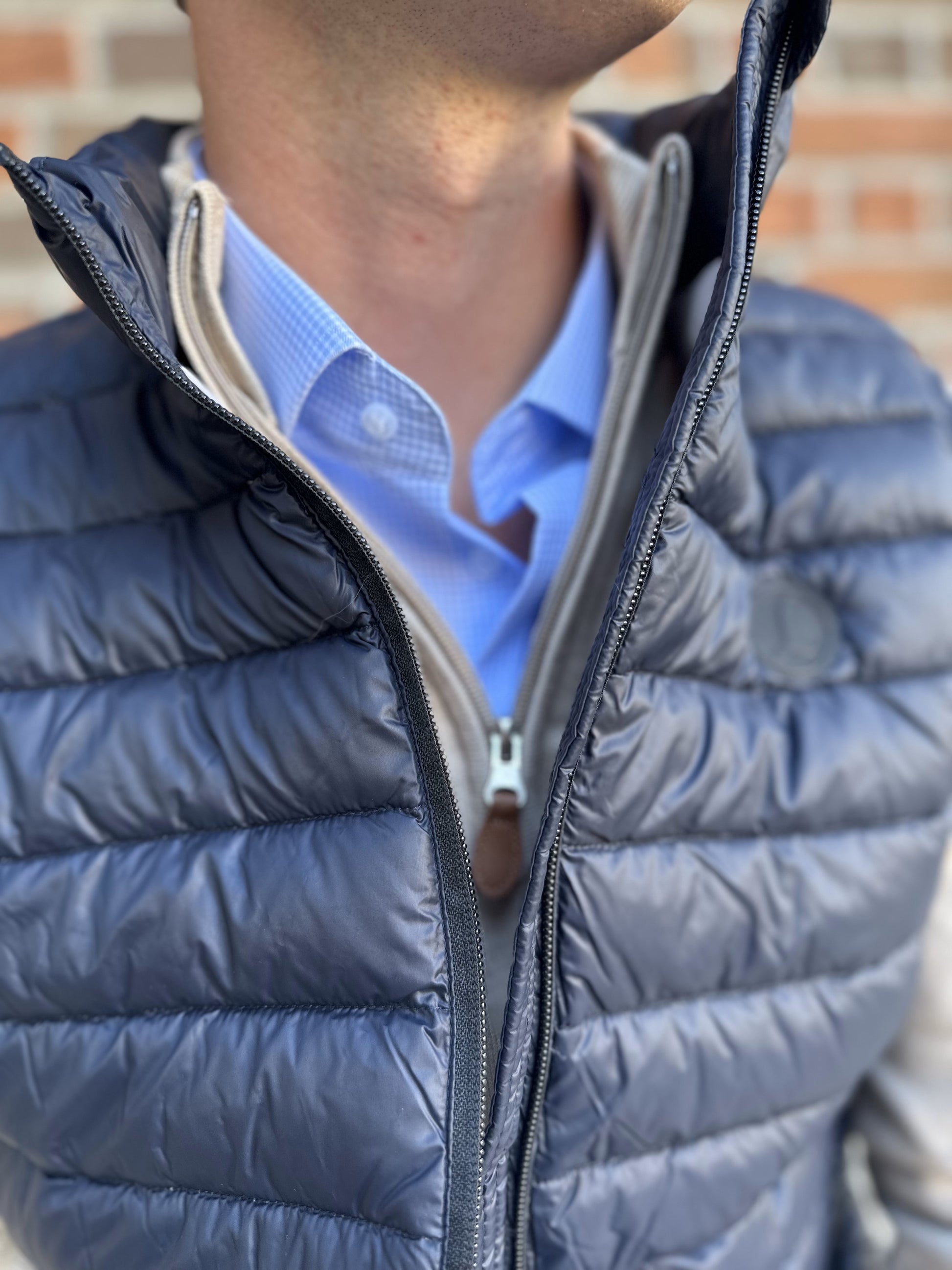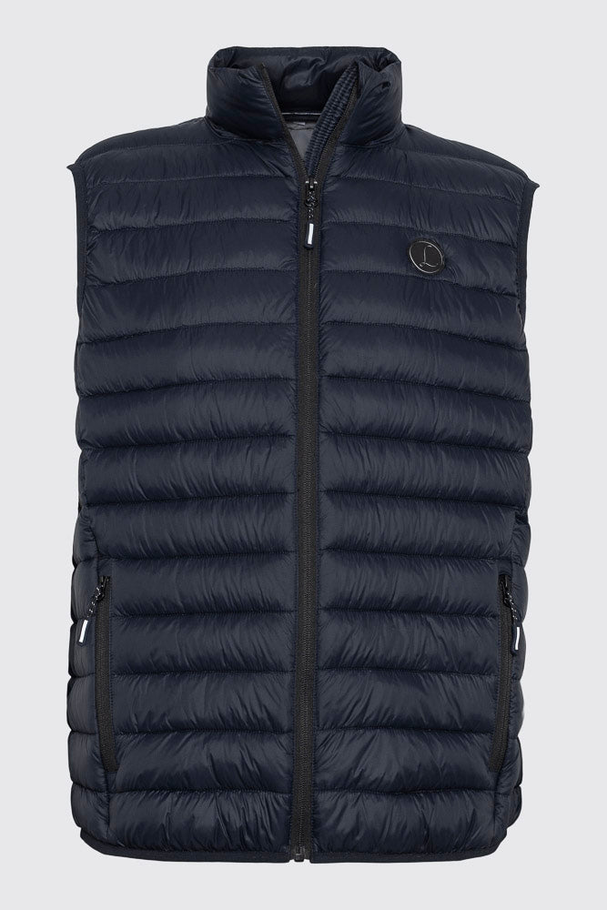 En klassisk dunvest med smale kanaler og marineblått ytre. Bruk den som midlayer under en vindjakke eller over en genser, skjorte eller t-skjorte i sommerhalvåret. Blend: 80% dun 20% fjær. Denne vesten er romslig i størrelsen.