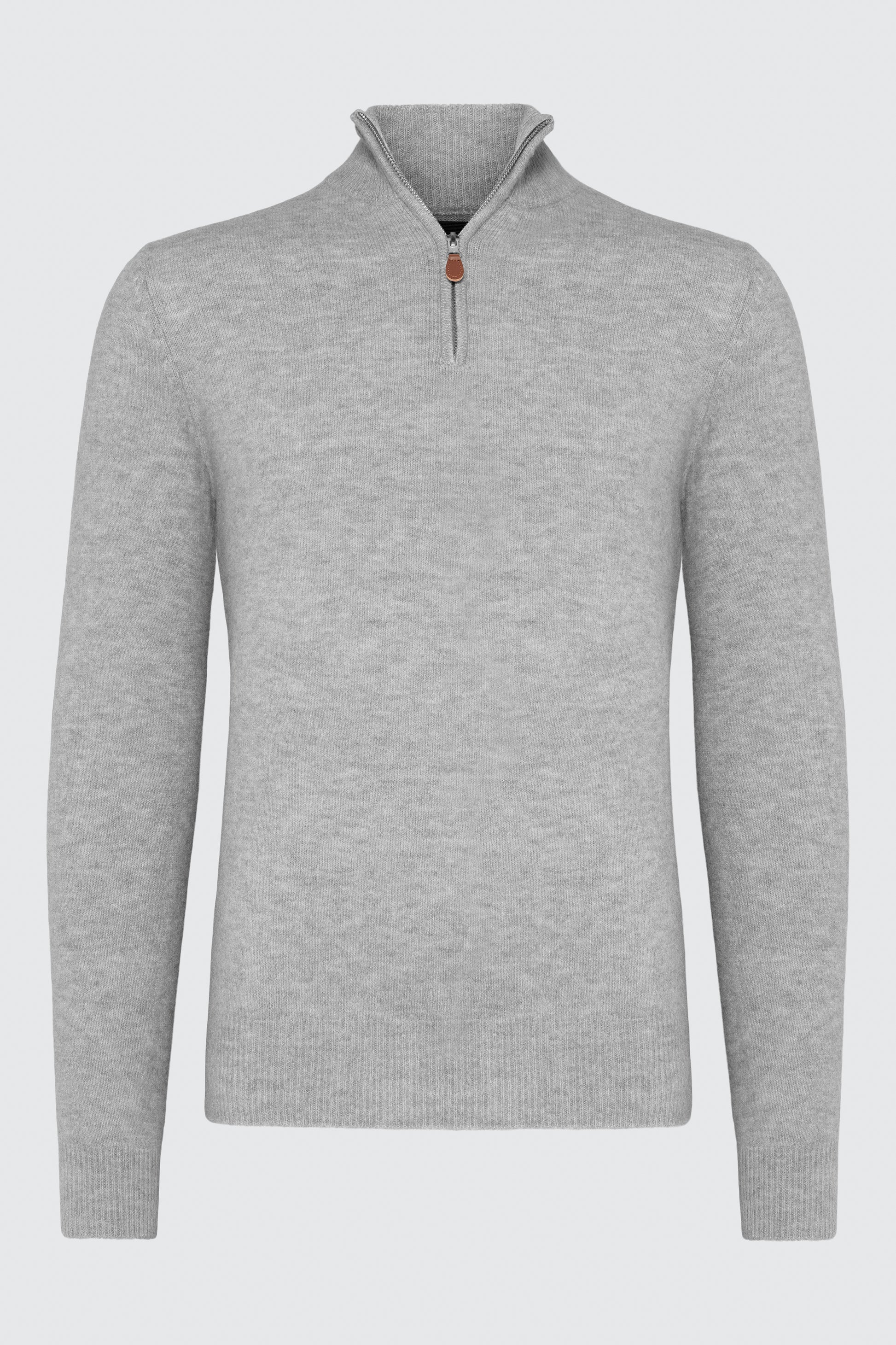 Klassisk genser i delikat grå. Utformet med halfzip og strikket i en myk kasjmirblanding. Passer perfekt over skjorten. Normal i størrelsen, velg din vanlige størrelse. Blend: 21% kasjmir, 13% viskose, 15% antinuppende akrylull, 20% nylon, 30% polyester.