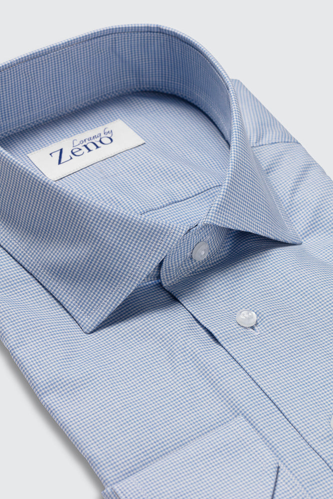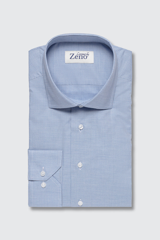 Lettstelt skjorte i petit gingham. Dette mønsteret gjør jobben for deg – formelt nok til møterommet, avslappet nok til aperitifen etterpå. Fungerer like godt alene med jeans som under en marineblå blazer. Knapper i perlemorsfarge og cut away krage. Regular fit for en rettere passform. Blend: 100% premium bomull