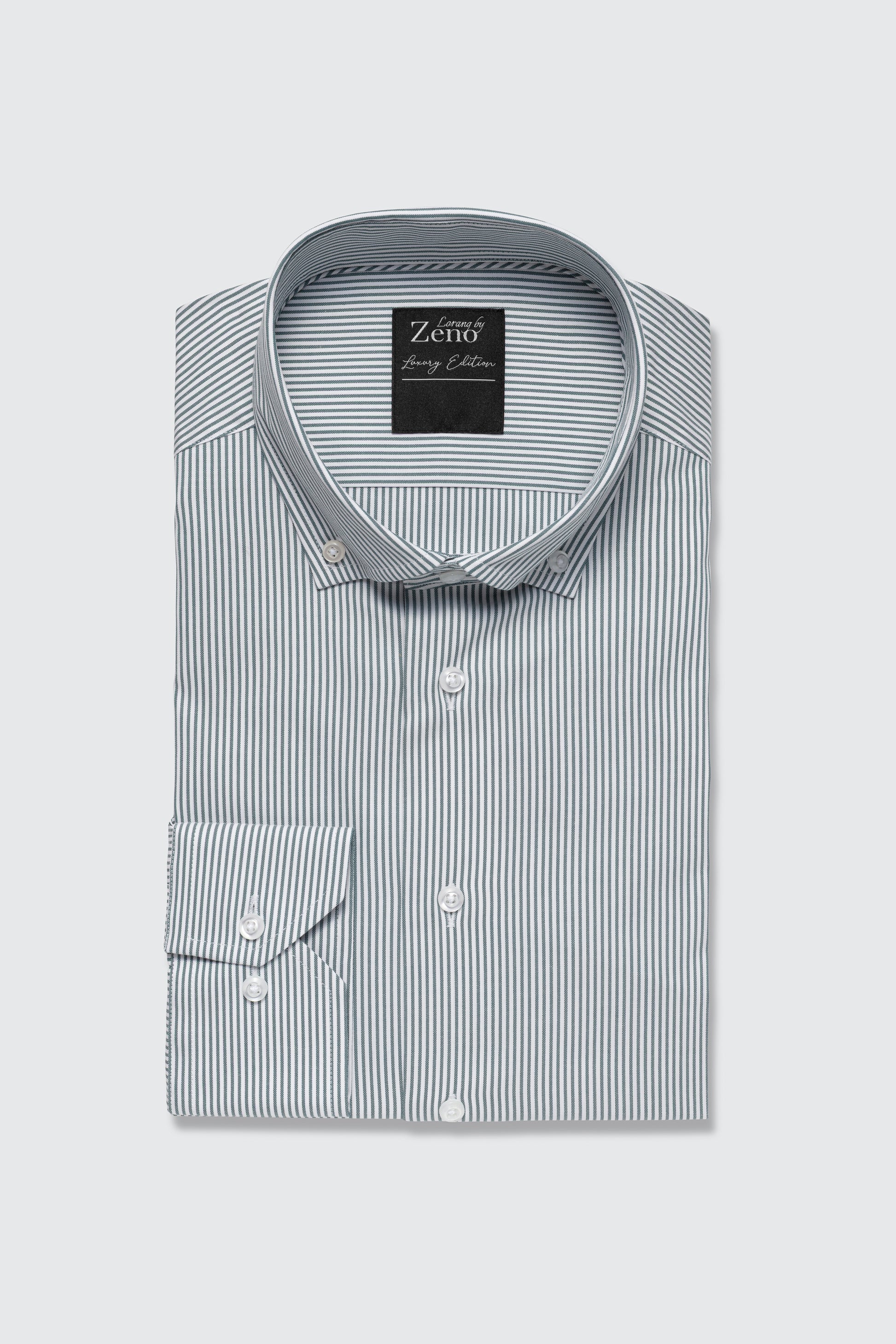 Stripete skjorte med casual button down krage. Skjortens tekstil er vevet av 2ply bomull, som gir en helt spesiell ha på følelse og fortjent kvalitet. Slim fit for en smalere passform. Vaskes på 40 grader og 600 omdreininger for et perfekt resultat.