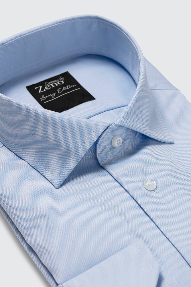Strykefri skjorte i klassisk Royal Oxford-vev. Et lett opphevet prikkmønster som gir stoffet en distinkt, perlelignende overflate. De lyseblå og hvite trådene flettes sammen i et fint mønster som skaper levende tekstur med naturlig glans. Perlemorsfargede knapper og cut away krage. Slim fit for en smalere passform. Blend: 81,5% 2 ply bomull og 18,5% forsterkende 2 ply polyester.
